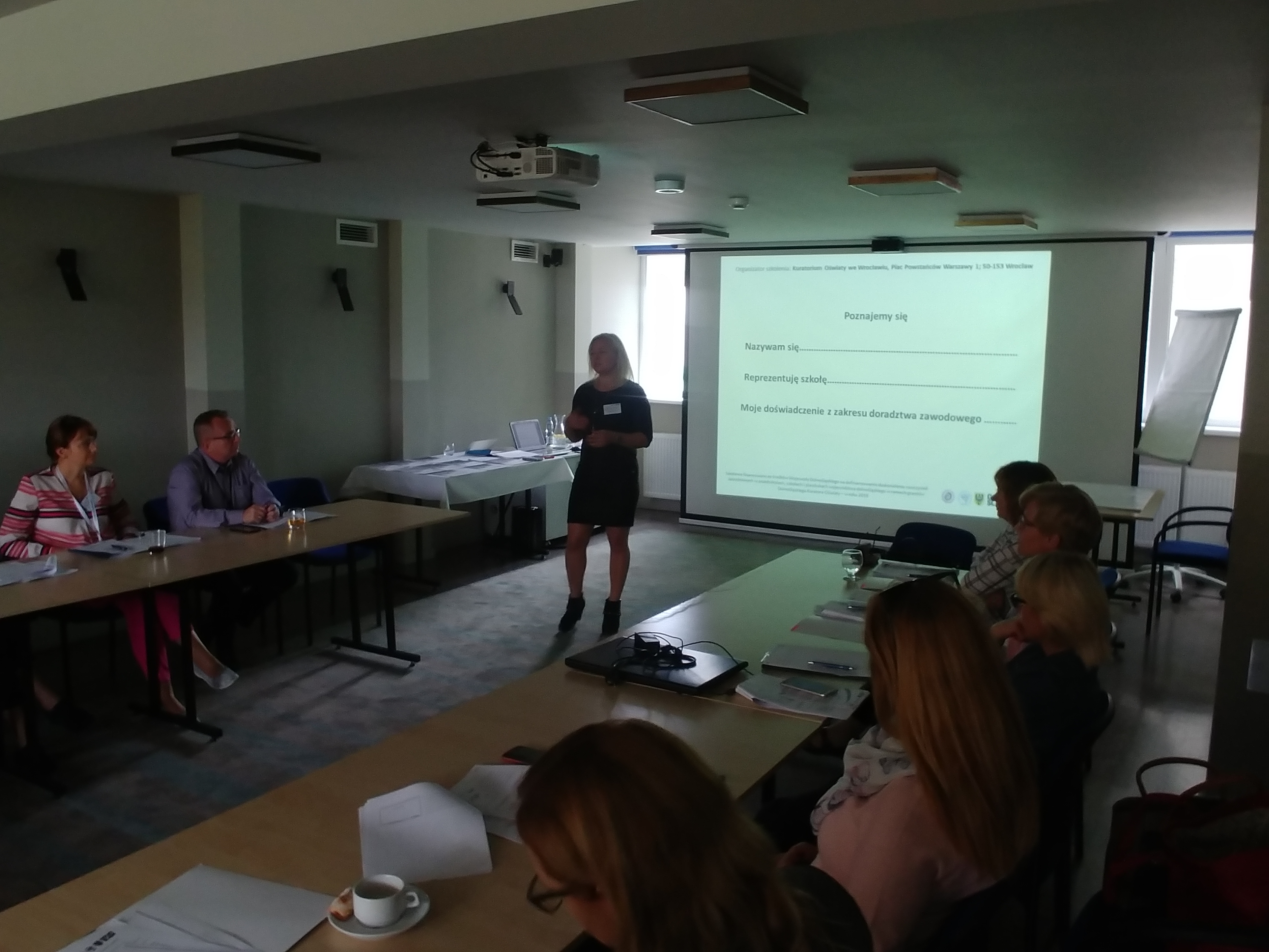 Dwa dni grantu były bardzo intensywne, wypełnione różnymi treściami z zakresu pracy z uczniem zdolnym i doradztwa zawodowego. Pierwszy wykład wygłosiła Halina Nawrotek, Koordynator Zespołu DCWU, na temat Efektywne sposoby wspierania uzdolnień i zainteresowań uczniów oraz szkolnego doradztwa zawodowego – założenia koncepcji Dolnośląskiego Systemu Wspierania Uzdolnień. Przypomniała o długiej tradycji Dolnośląskiej Sieci Szkół Wspierających Uzdolnienia i wyeksponowała wyzwania, jakie stoją przed szkołami w związku z dokonującą się reformą. Ewa Norkowska, Kierownik Zespołu ds. kształcenia zawodowego, w swoim wystąpieniu pn. Rola nauczyciela i rodzica w doradztwie. Aktualne przepisy prawa oświatowego w zakresie doradztwa zawodowego w Polsce bardzo mocno zaakcentowała potrzebę dialogu między środowiskiem rodzinnym i szkolnym uczniów, by wspierać ich w życiowych wyborach, dotyczących kształcenia i wyboru zawodu. Ostatnie wystąpienie Krystyny Pac-Marcinkowskiej i Małgorzaty Reichel pt. Potrzeba doradzania uczniom o zidentyfikowanych zainteresowaniach i uzdolnieniach w wyborze dalszej ścieżki kształcenia oraz przyszłego zawodu było dopełnieniem wcześniej zasygnalizowanych treści, podkreślało rangę doradztwa zawodowego w przygotowywaniu ucznia szczególnie uzdolnionego do funkcjonowania na rynku pracy.