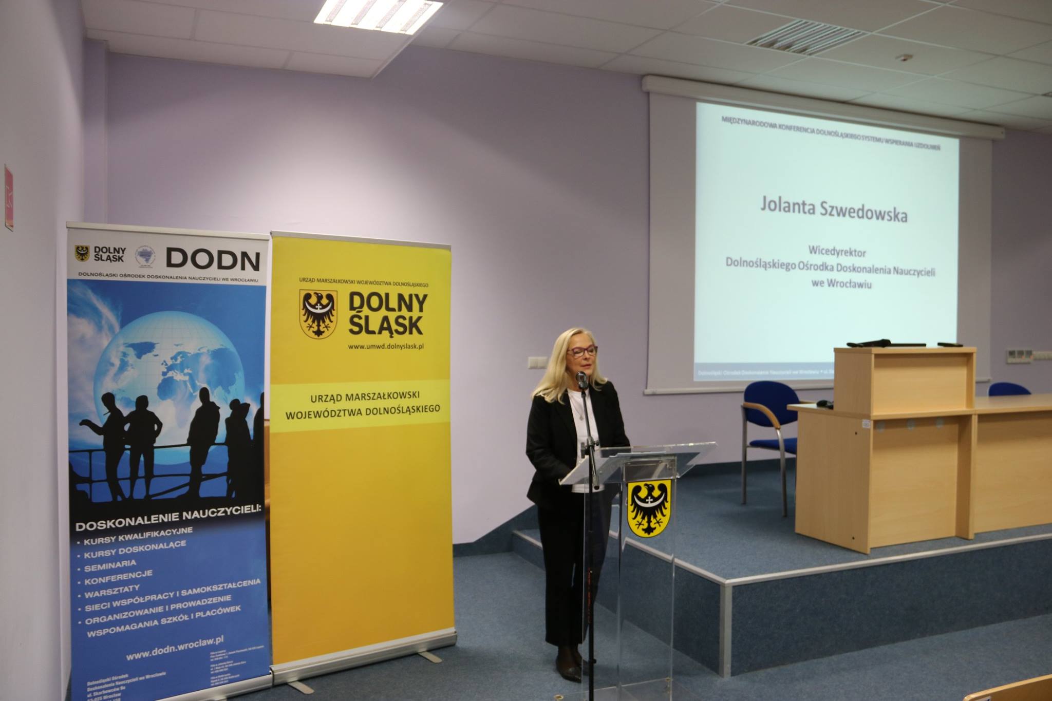 W pierwszej części konferencji Jolanta Szwedowska, wicedyrektor DODN we Wrocławiu, serdecznie przywitała wszystkich uczestników, sygnalizując, że konferencja wieńczy kilkudniową wizytę studyjną gości zagranicznych, którzy przyjechali po inspirację ze strony przedstawicieli naszej dolnośląskiej edukacji oraz podzielić się własnymi doświadczeniami.